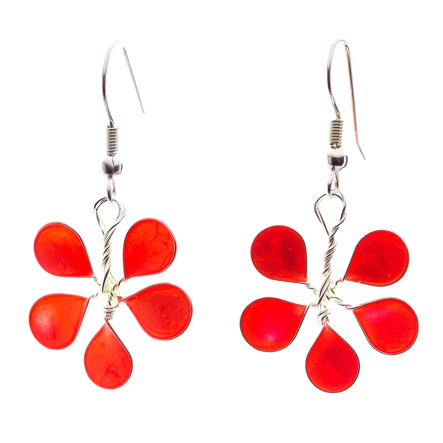 bakrena posrebrena žica, umetna masa, osnova uhana je kirurško jeklo